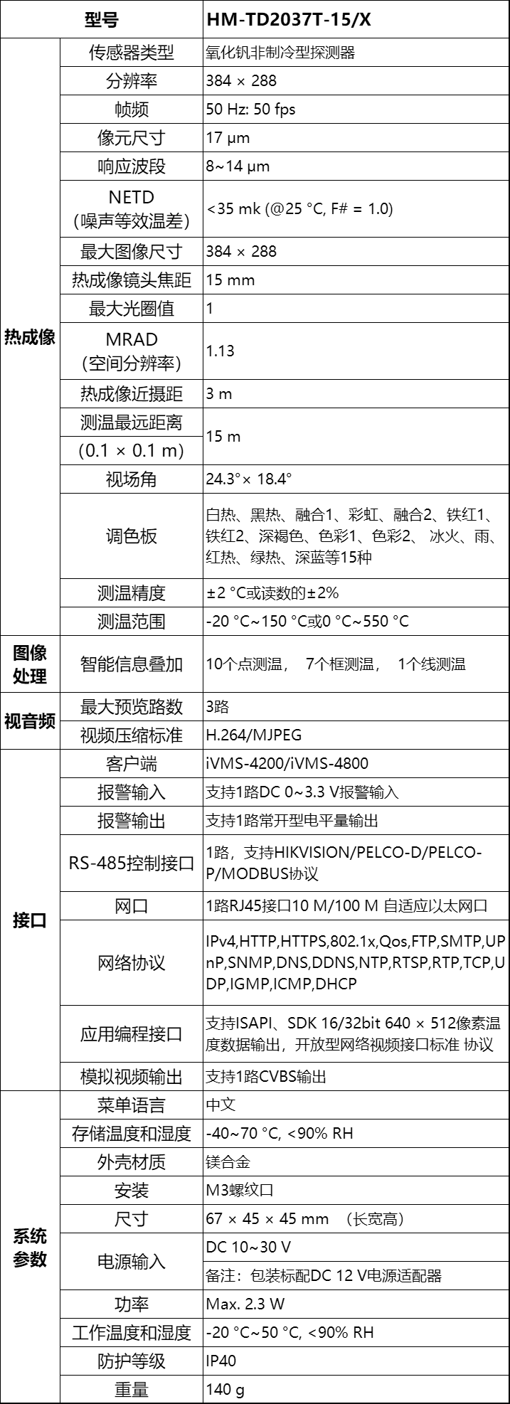 海康小型化工业测温模组 HM-TD2037T-15/X